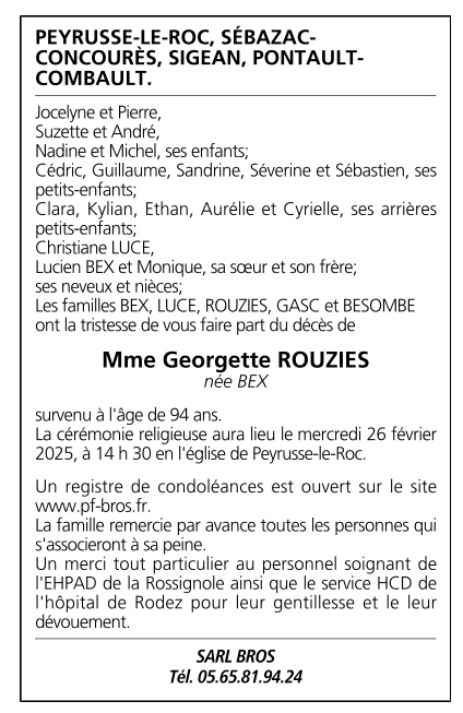 Fallecida en Rodez (12000, Francia) el domingo, 23 de febrero de 2025 a la edad de 94 años