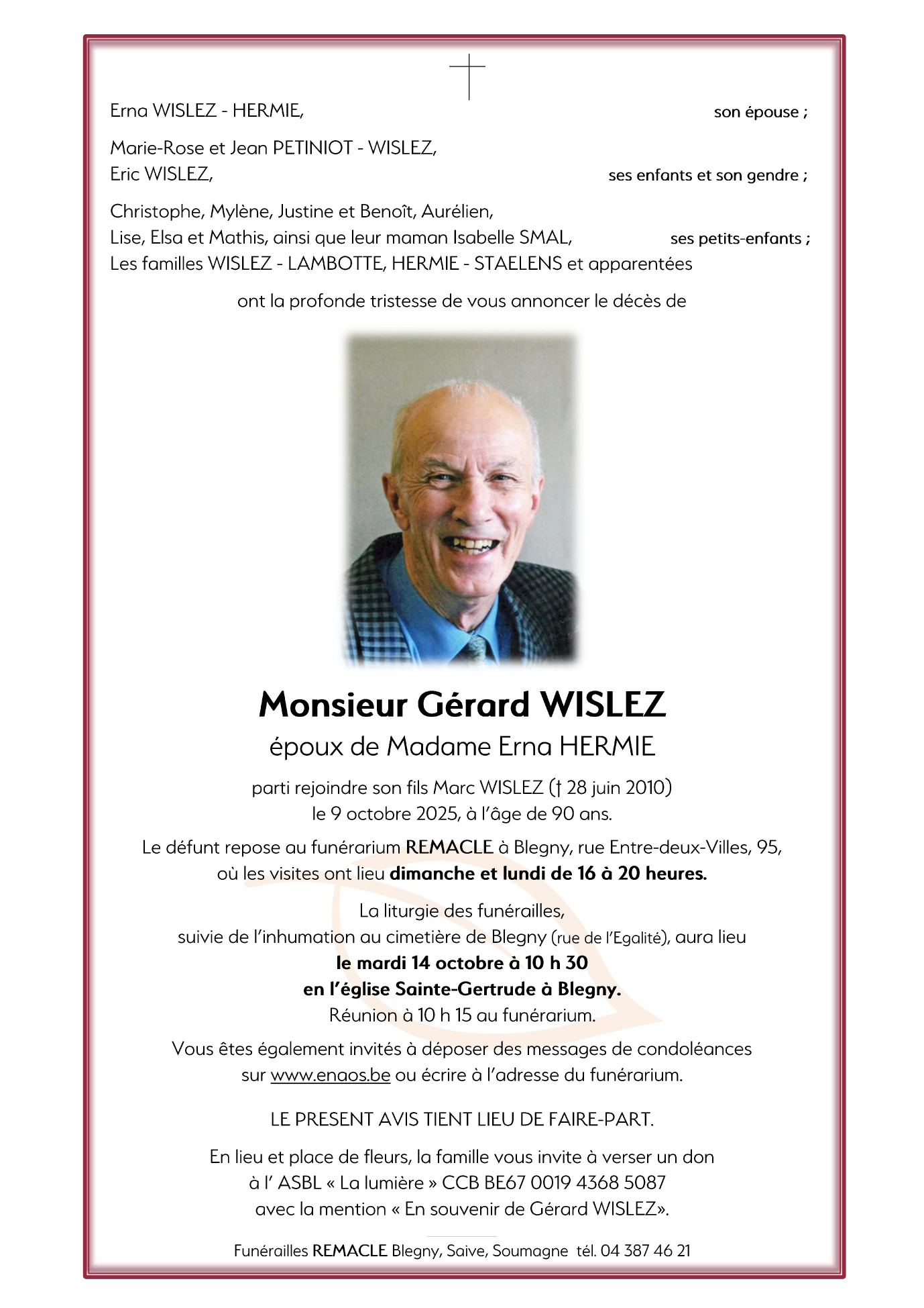 Fallecido en Blegny (4670) el jueves, 9 de octubre de 2025 a la edad de 90 años
