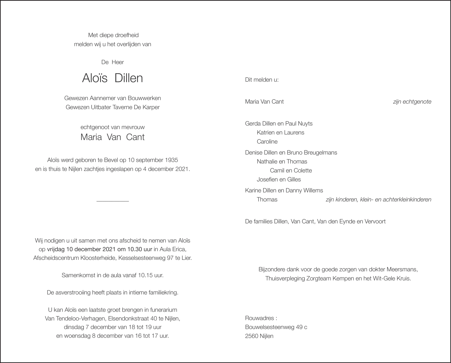 Décédé à Nijlen (2560) le samedi 4 décembre 2021 à l'âge de 86 ans