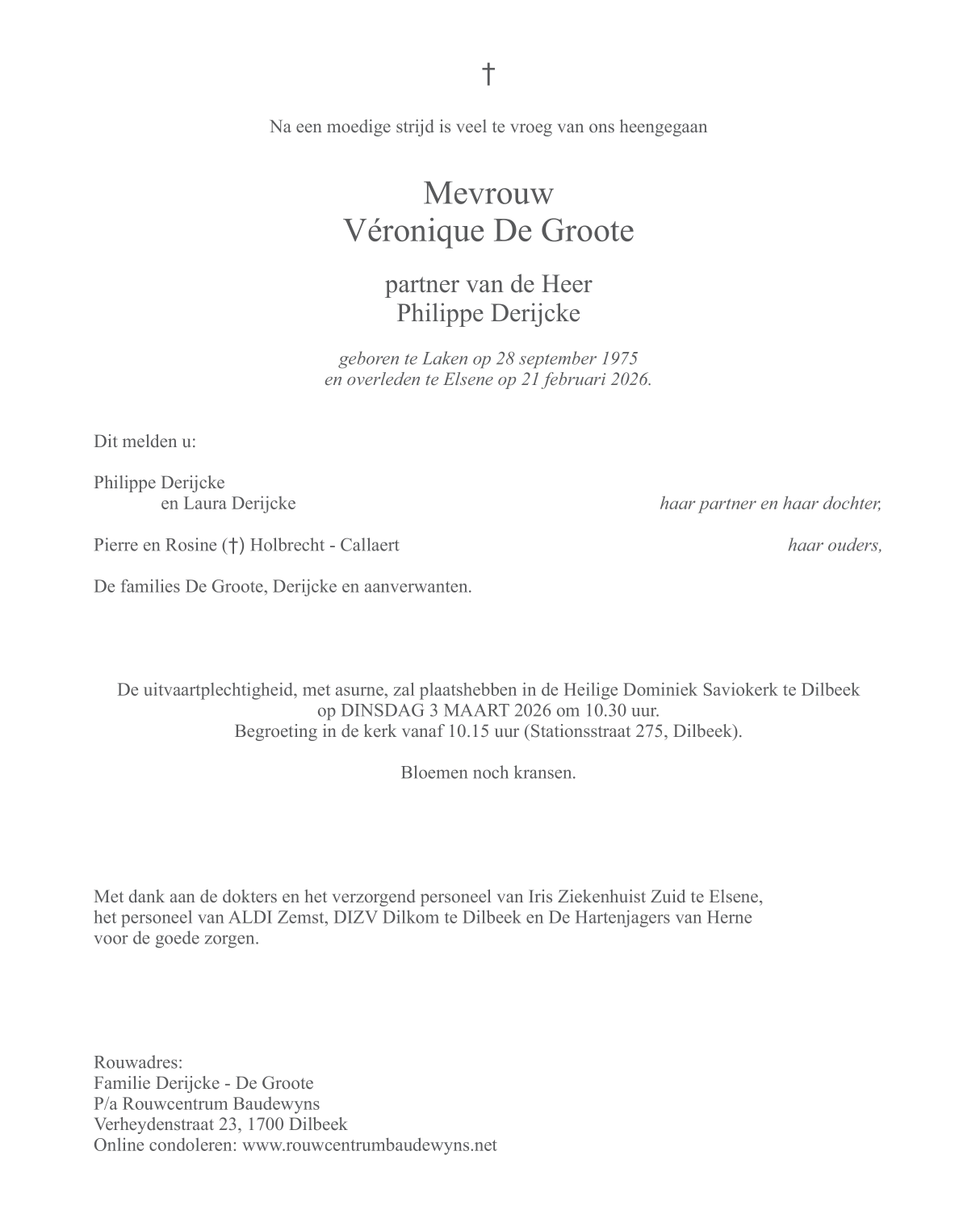 Overleden te Elsene (1050) op zaterdag 21 februari 2026 op 50-jarige leeftijd