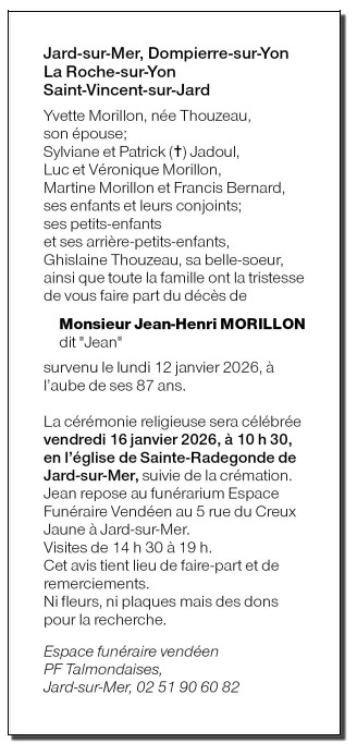 Décédé à Les Sables d'Olonne (85100, France) le mardi 13 janvier 2026 à l'âge de 86 ans