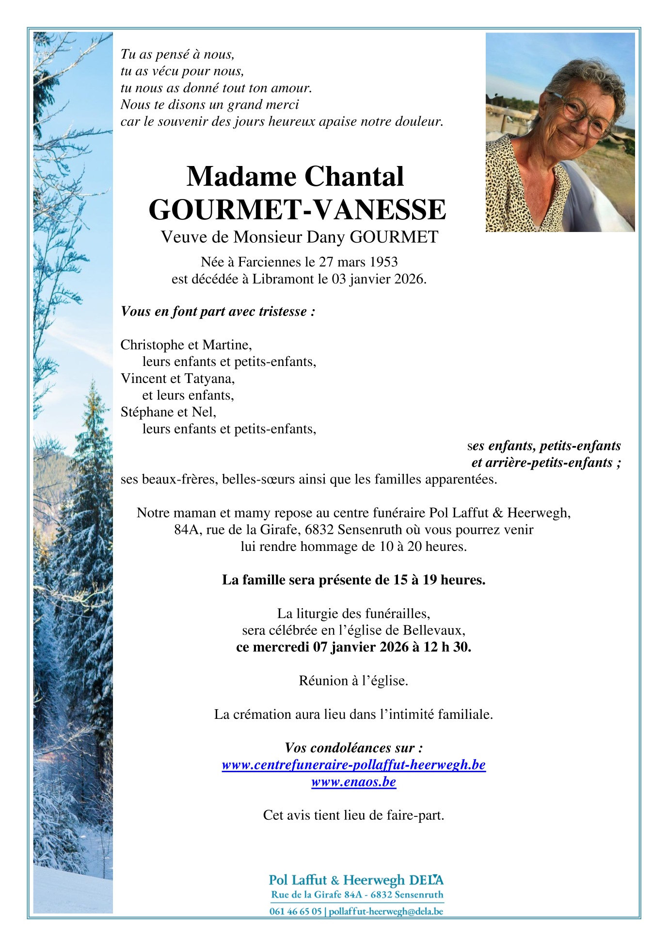 Died in Libramont-Chevigny (6800) on 03 January 2026 at the age of 72 years