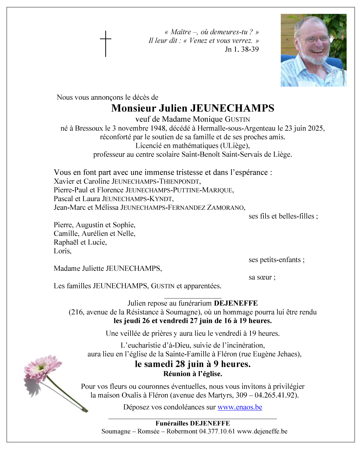 Décédé à Hermalle-sous-Argenteau (4681) le lundi 23 juin 2025 à l'âge de 76 ans