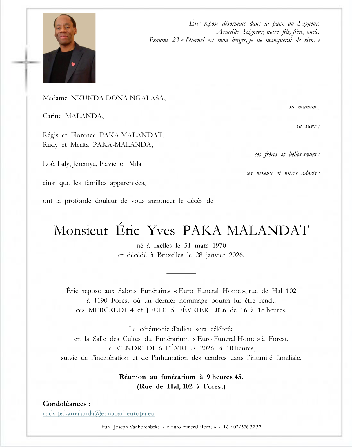 Décédé à Bruxelles (1000) le mercredi 28 janvier 2026 à l'âge de 55 ans