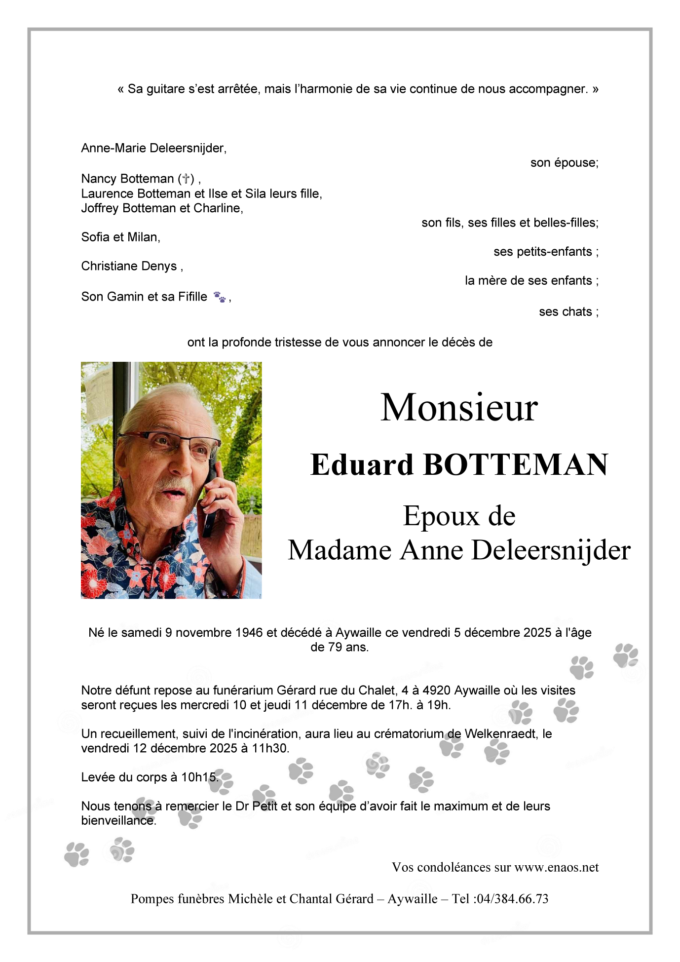 Overleden te Aywaille (4920) op vrijdag 5 december 2025 op 79-jarige leeftijd
