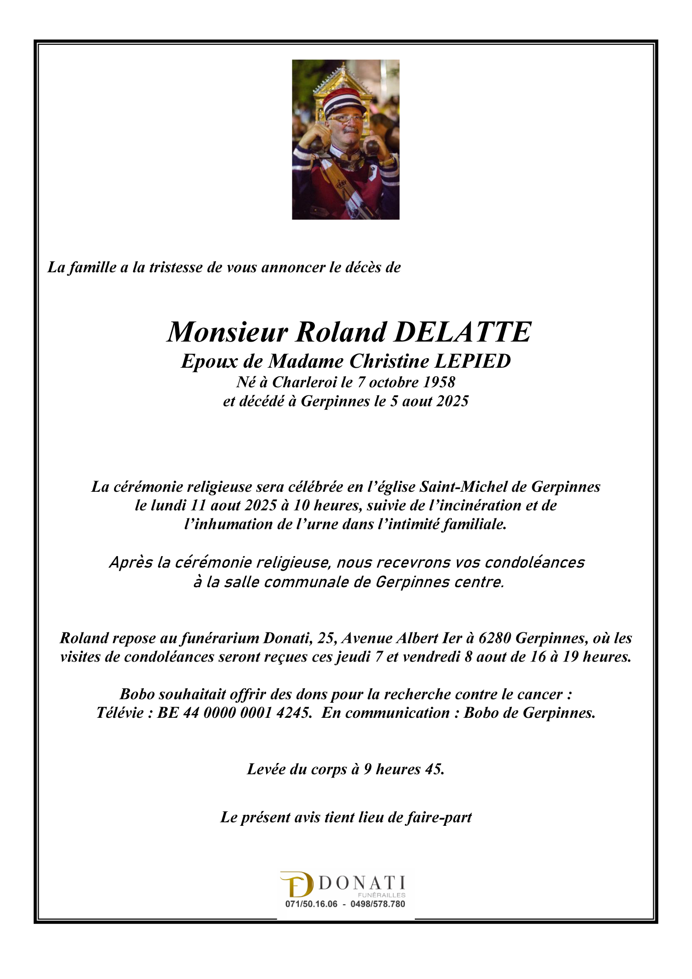 Décédé à Gerpinnes (6280) le mardi 5 août 2025 à l'âge de 66 ans