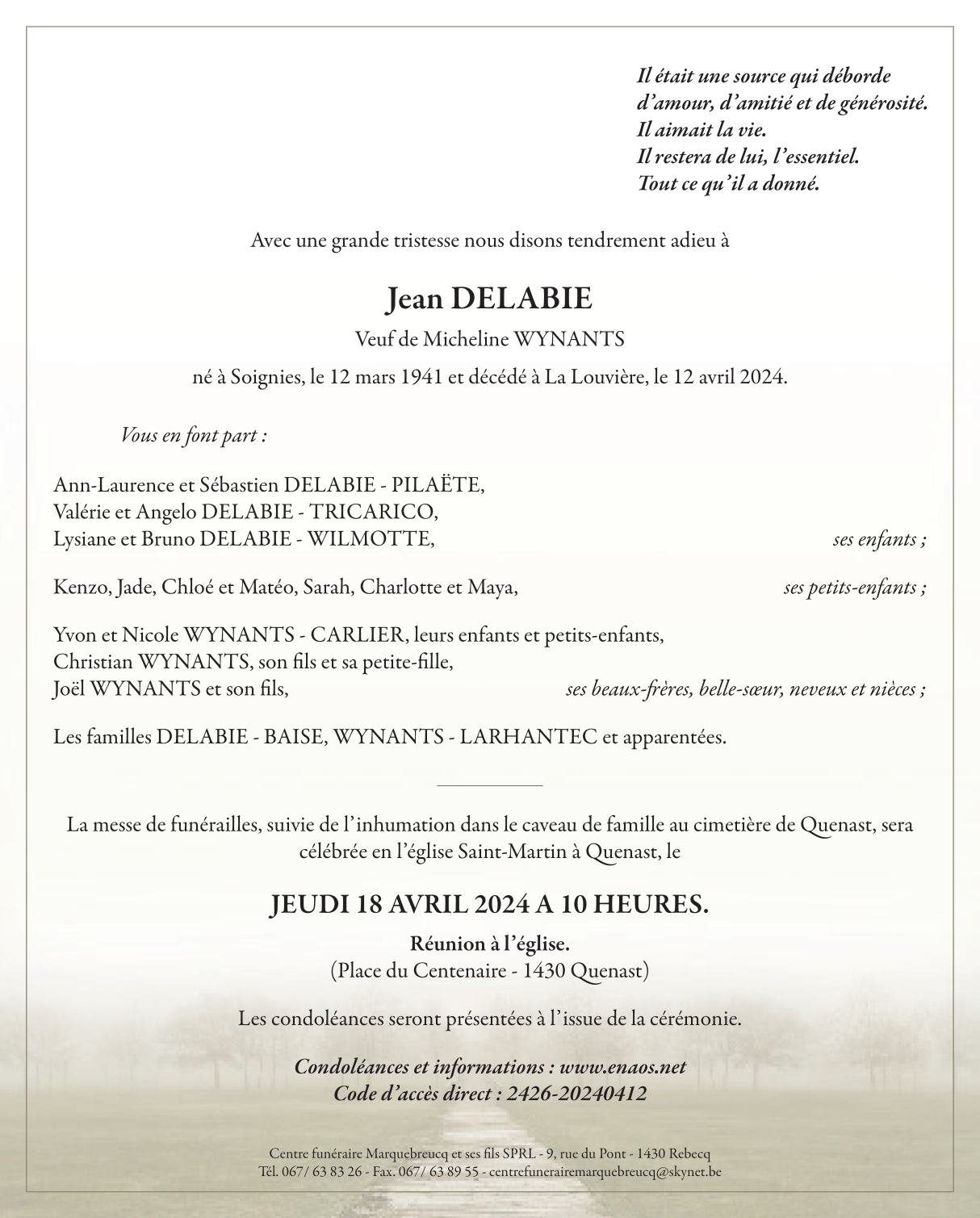 Décédé à La Louvière (7100) le vendredi 12 avril 2024 à l'âge de 83 ans