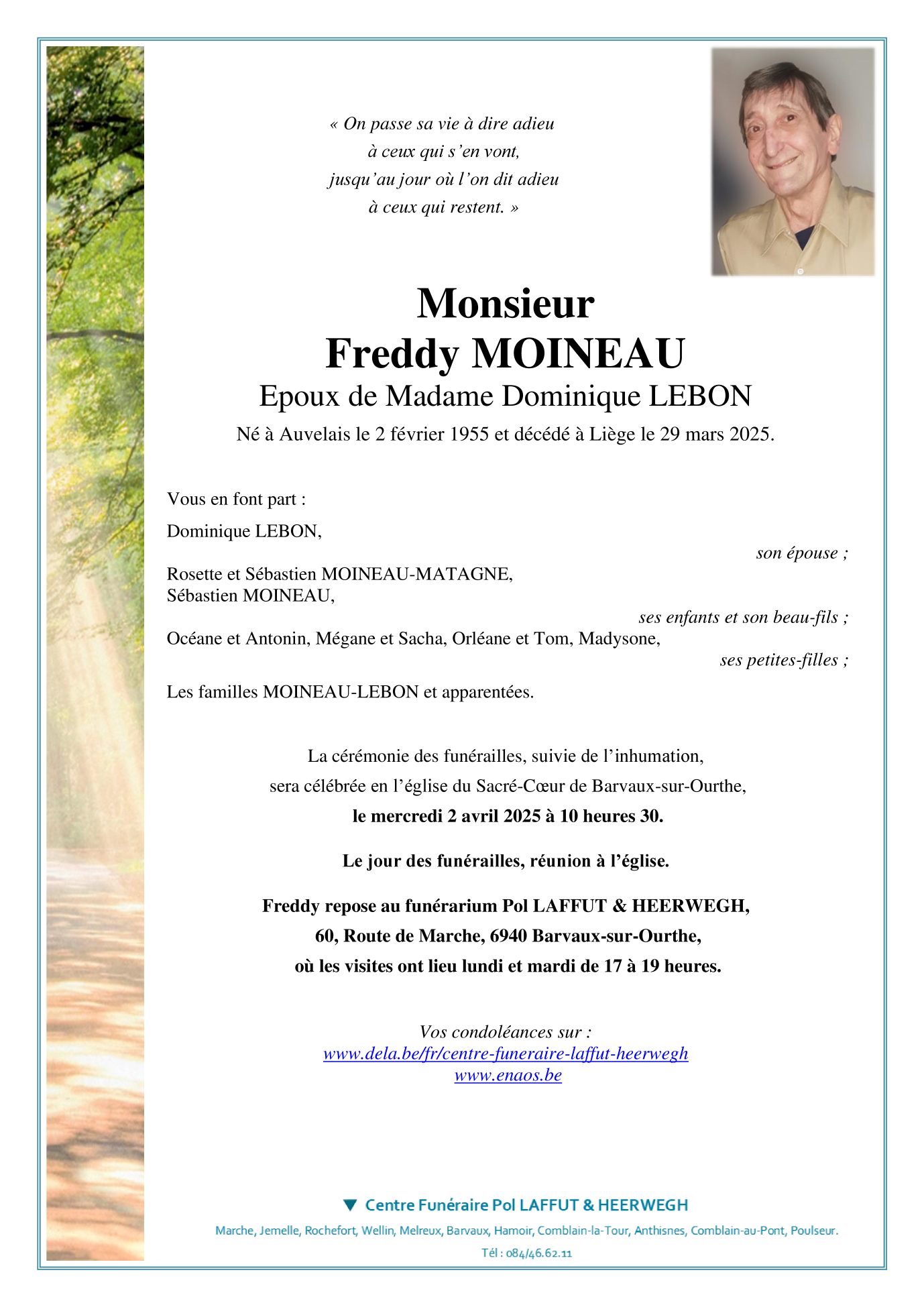 Décédé à Liège (4000) le samedi 29 mars 2025 à l'âge de 70 ans