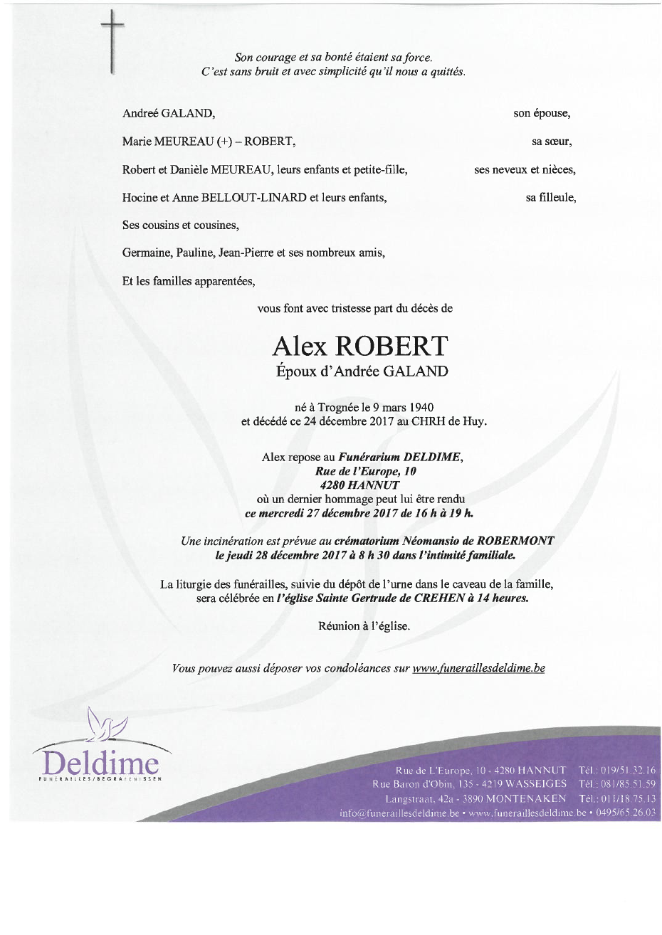 Décédé à Huy (4500) le dimanche 24 décembre 2017 à l'âge de 77 ans