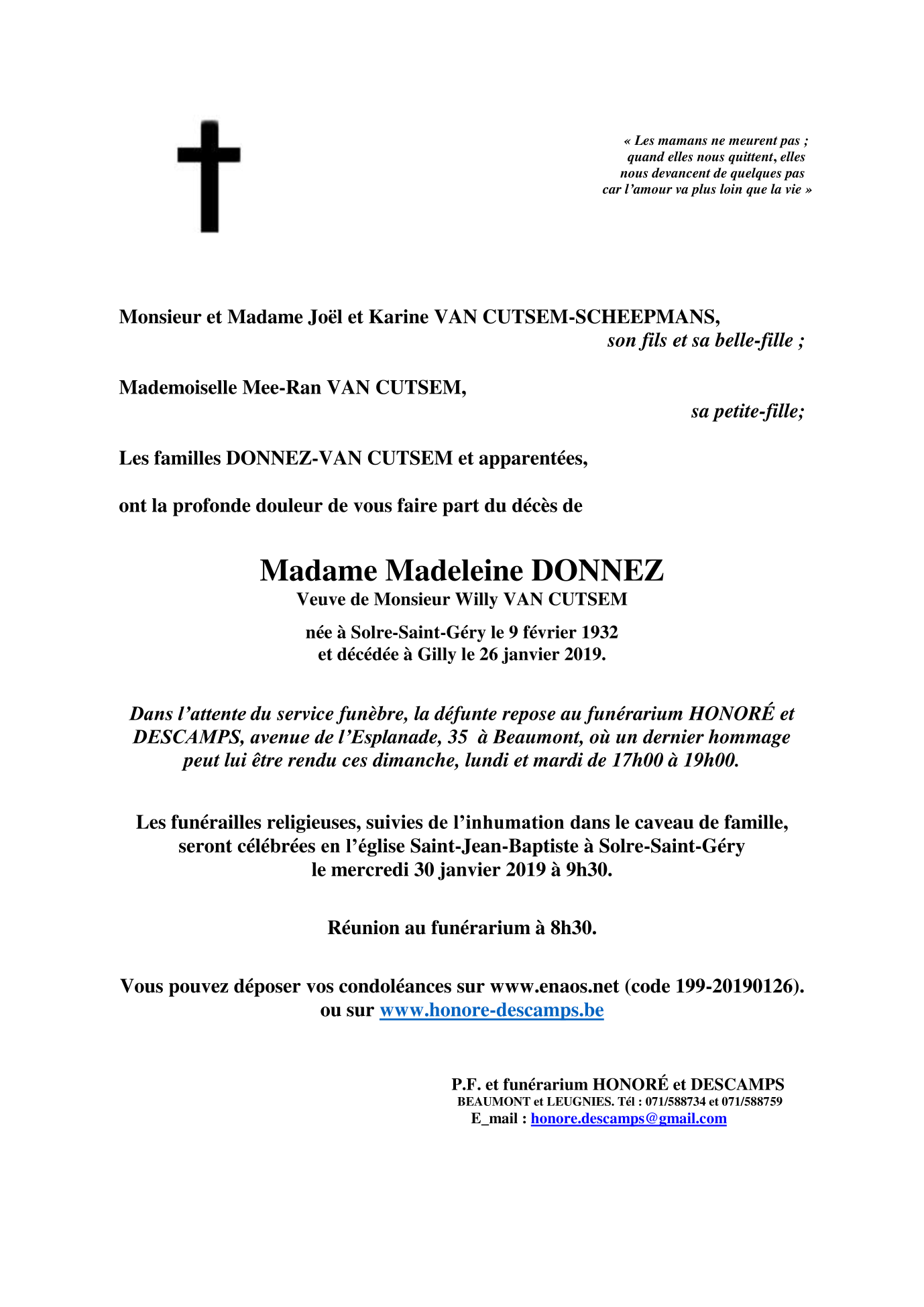 Fallecida en Gilly (6060) el sábado, 26 de enero de 2019 a la edad de 86 años