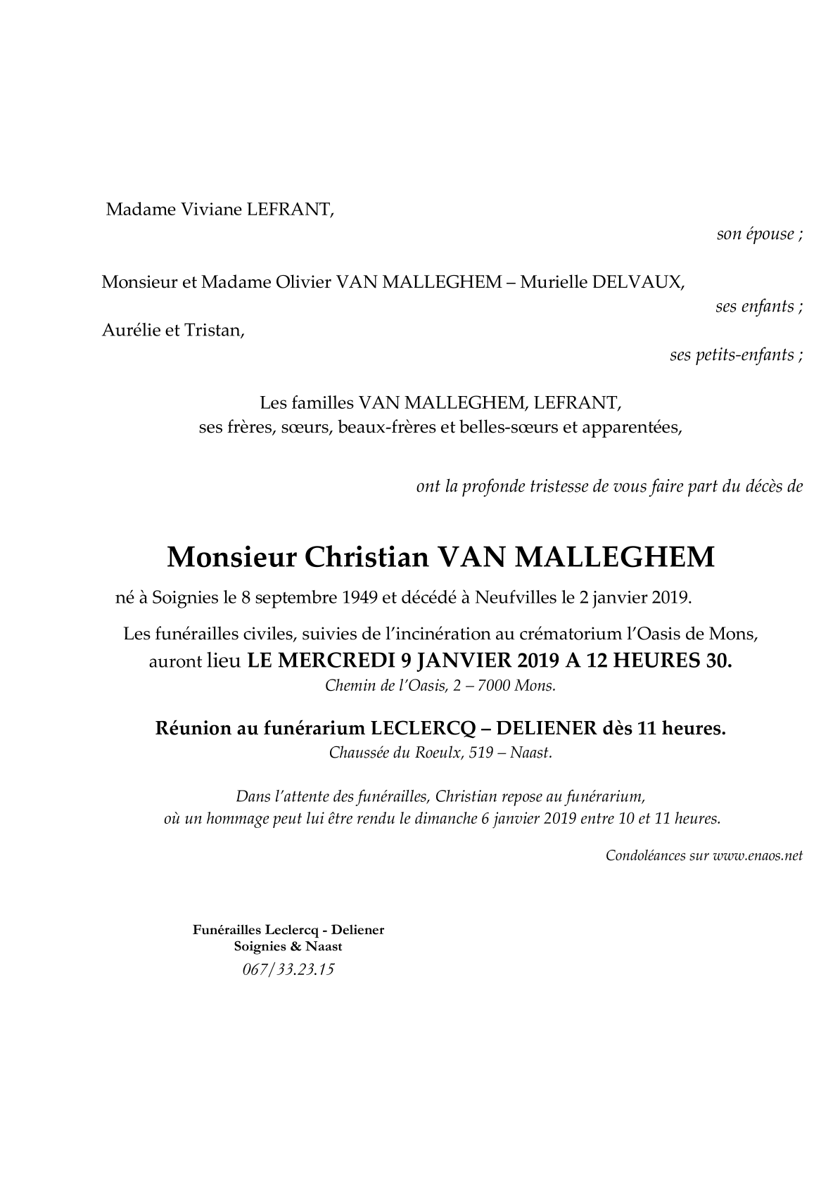Fallecido en Neufvilles (7063) el miércoles, 2 de enero de 2019 a la edad de 69 años
