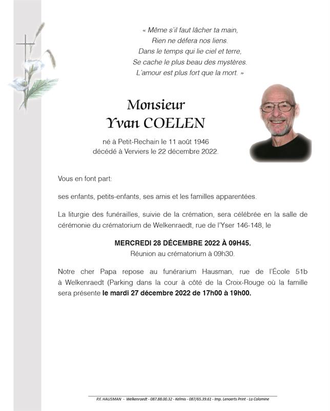 Overleden te Verviers (4800) op donderdag 22 december 2022 op 76-jarige leeftijd