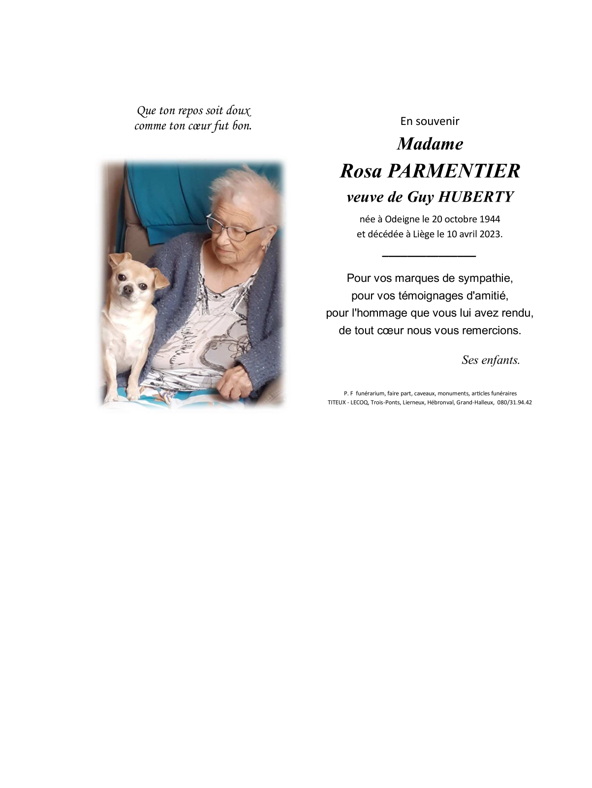Fallecida en Liège (4000) el lunes, 10 de abril de 2023 a la edad de 78 años