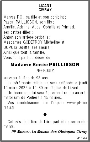 Madame Renée PAILLISSON née BOUTY