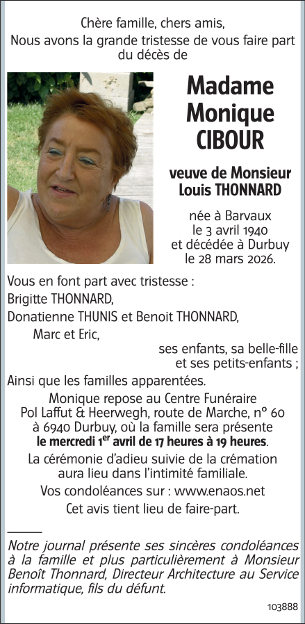 Veuve de Monsieur Louis THONNARD