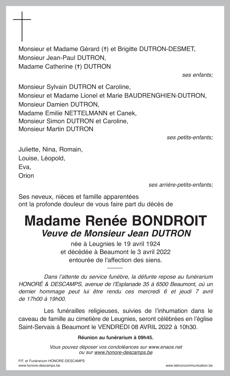 Fallecida en Beaumont (6500) el domingo, 3 de abril de 2022 a la edad de 97 años
