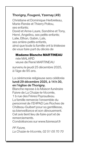 Widow of Monsieur René MARTINEAU