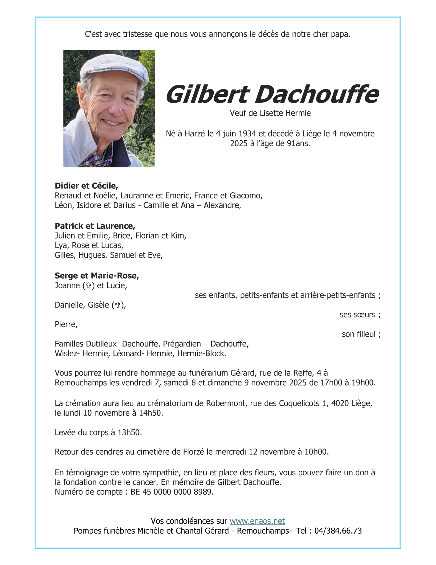 Died in Liège (4000) on 04 November 2025 at the age of 91 years