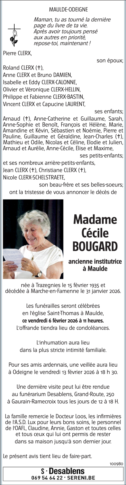 Died in Marche-en-Famenne (6900) on 31 January 2026 at the age of 90 years