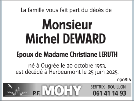 Overleden te Herbeumont (6887) op woensdag 25 juni 2025 op 71-jarige leeftijd