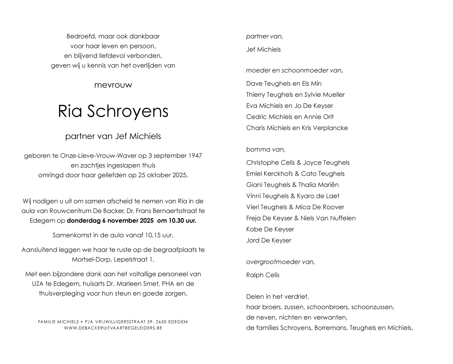 Died in Mortsel (2640) on 25 October 2025 at the age of 78 years