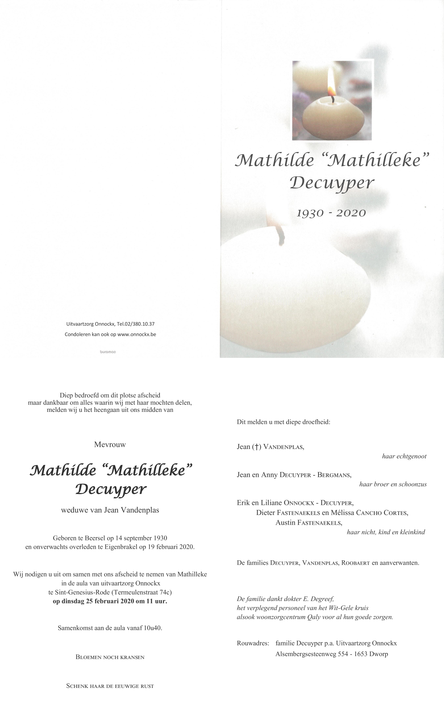 Décédée à Braine-l'Alleud (1420) le mercredi 19 février 2020 à l'âge de 89 ans