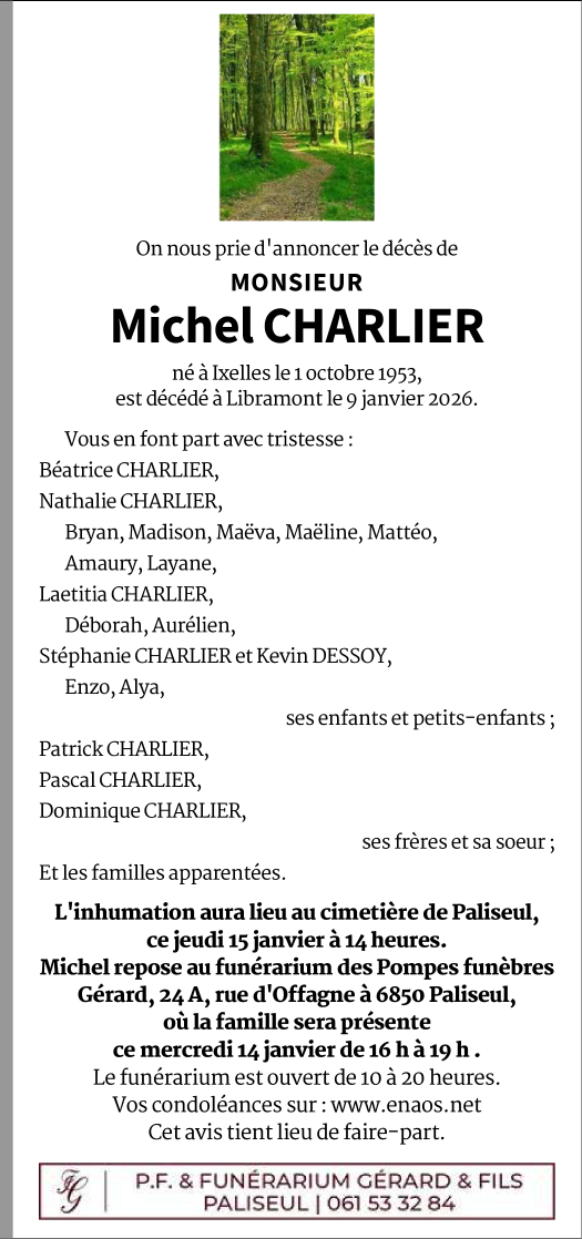 Décédé à Libramont (6800) le mardi 13 janvier 2026 à l'âge de 72 ans