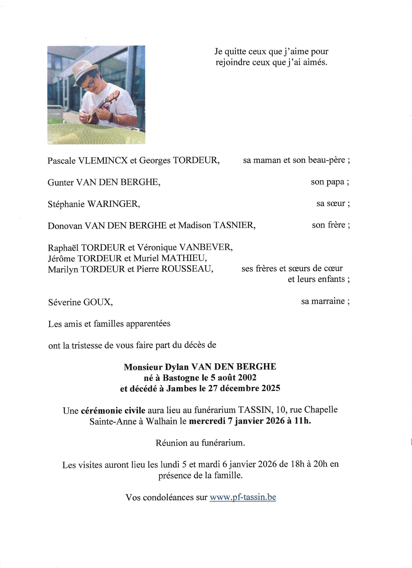 Décédé à Jambes (5100) le samedi 27 décembre 2025 à l'âge de 23 ans