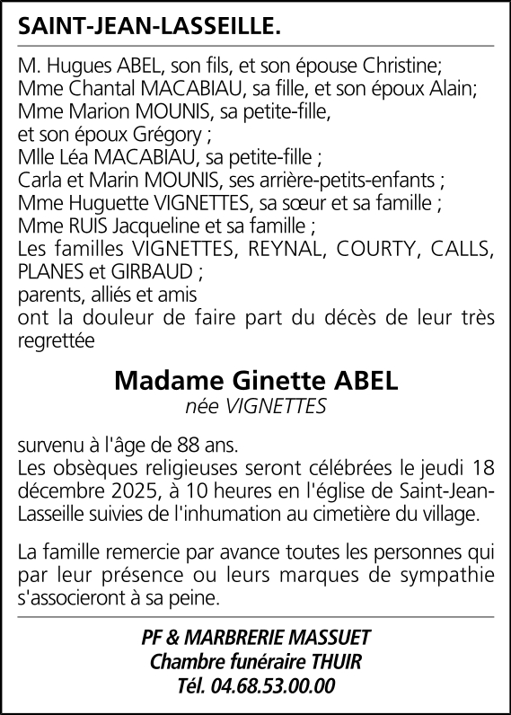 Décédée à Perpignan (66000, France) le lundi 15 décembre 2025 à l'âge de 88 ans