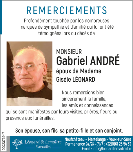 Décédé à Neufchâteau (6840) le dimanche 20 juillet 2025 à l'âge de 89 ans