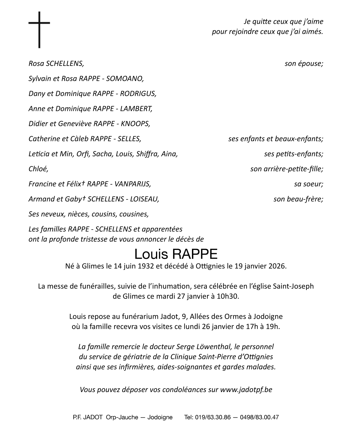 Décédé à Ottignies (1340) le lundi 19 janvier 2026 à l'âge de 93 ans