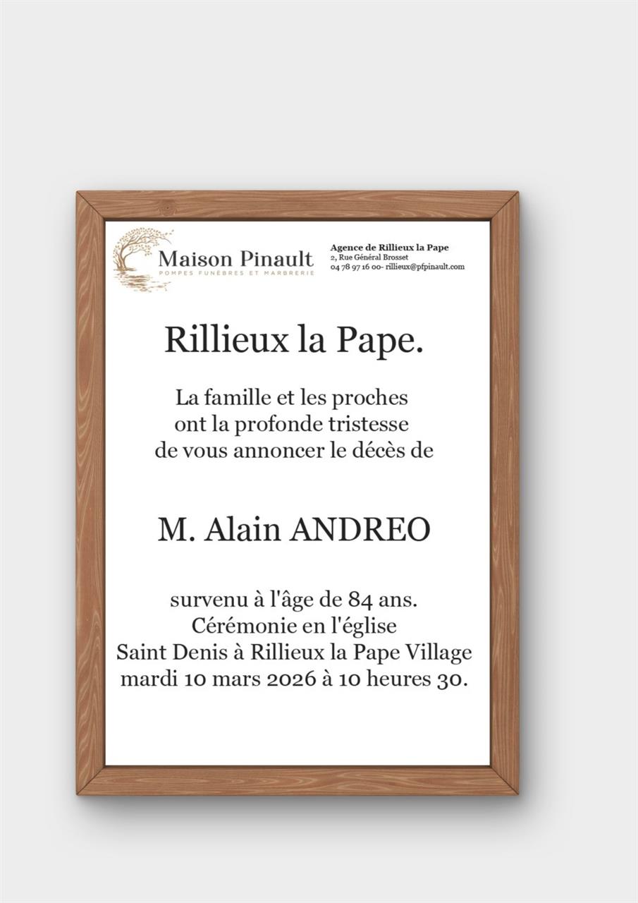 Overleden te Saint-André-de-Corcy (01390, Frankrijk) op woensdag 4 maart 2026 op 84-jarige leeftijd