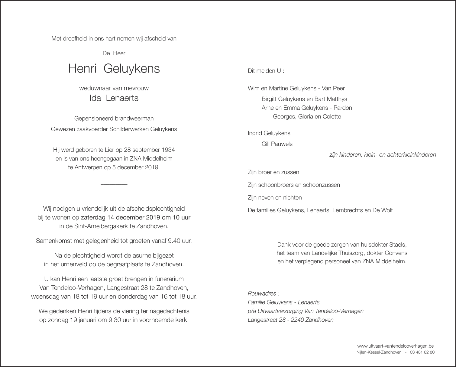 Décédé à Wilrijk (Antwerpen) (2610) le jeudi 5 décembre 2019 à l'âge de 85 ans