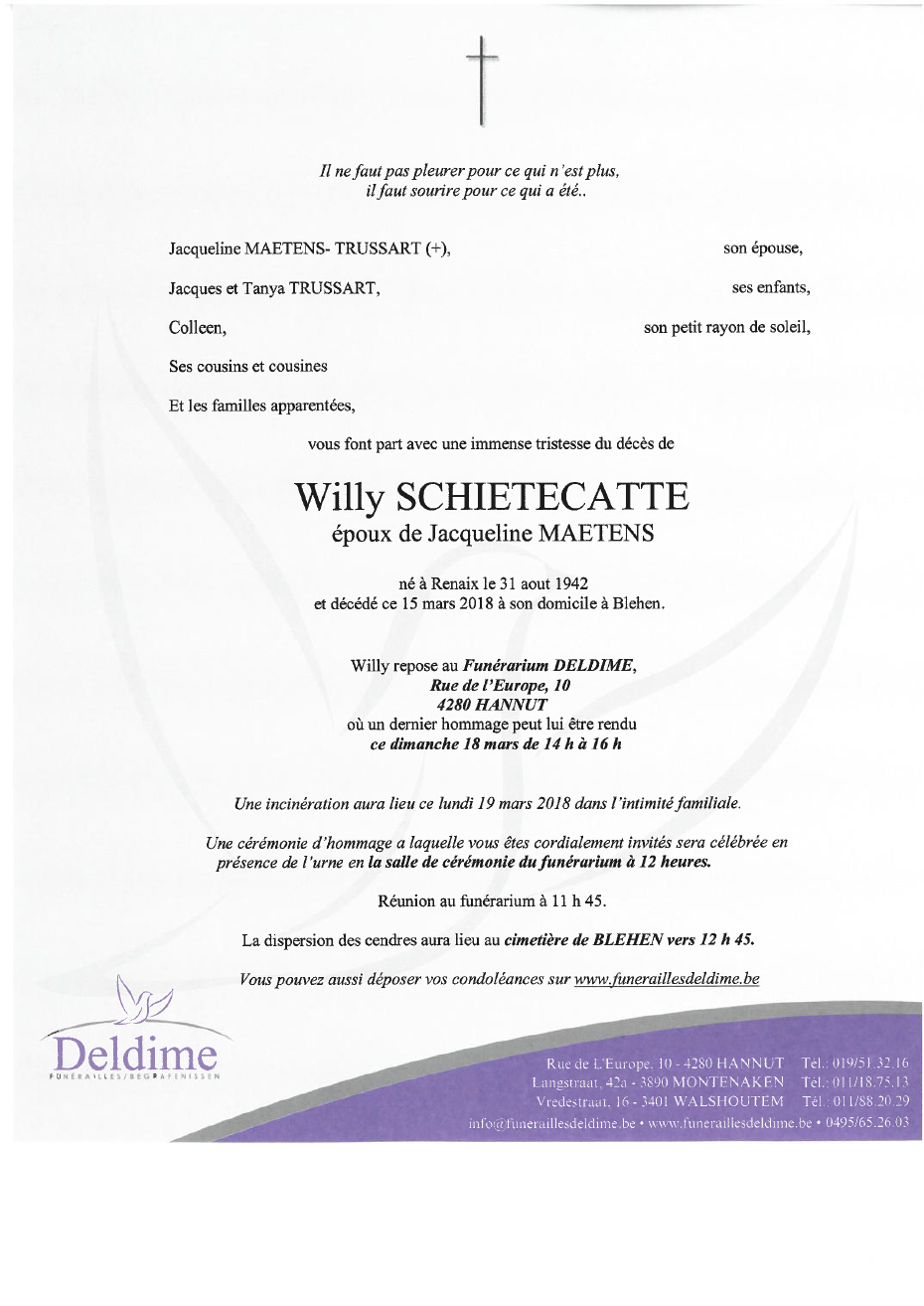 Overleden te Blehen (4280) op donderdag 15 maart 2018 op 75-jarige leeftijd