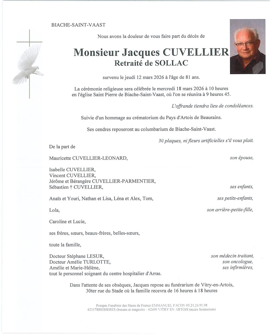 Décédé à Arras (62000, France) le jeudi 12 mars 2026 à l'âge de 81 ans