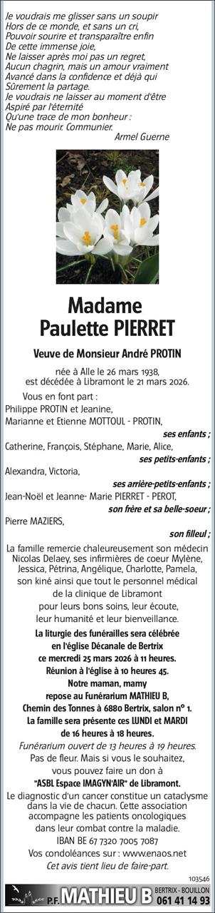 Overleden te Libramont (6800) op zondag 22 maart 2026 op 87-jarige leeftijd