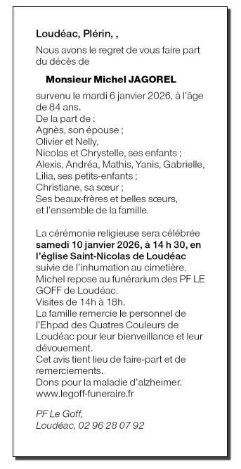 Fallecido en Loudéac (22600, Francia) el martes, 6 de enero de 2026 a la edad de 84 años