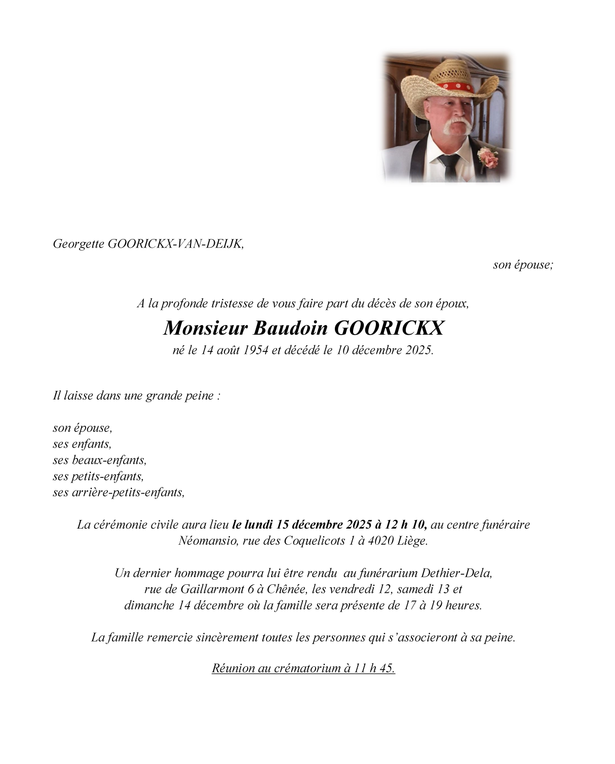 Died in Chênée (4032) on 10 December 2025 at the age of 71 years