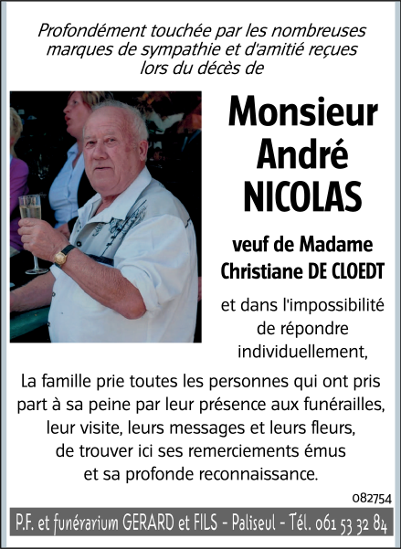 Décédé à Bievre (5555) le lundi 13 janvier 2025 à l'âge de 91 ans