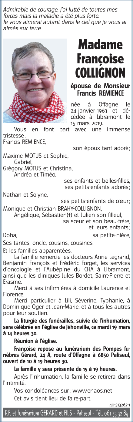 Spouse of Monsieur Francis REMIENCE