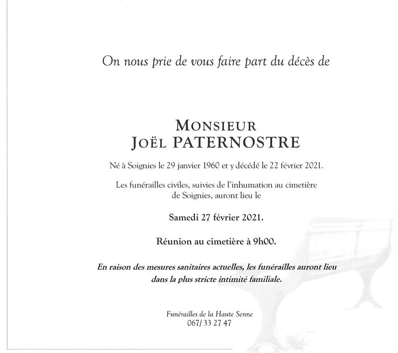 Décédé à Soignies (7060) le lundi 22 février 2021 à l'âge de 61 ans