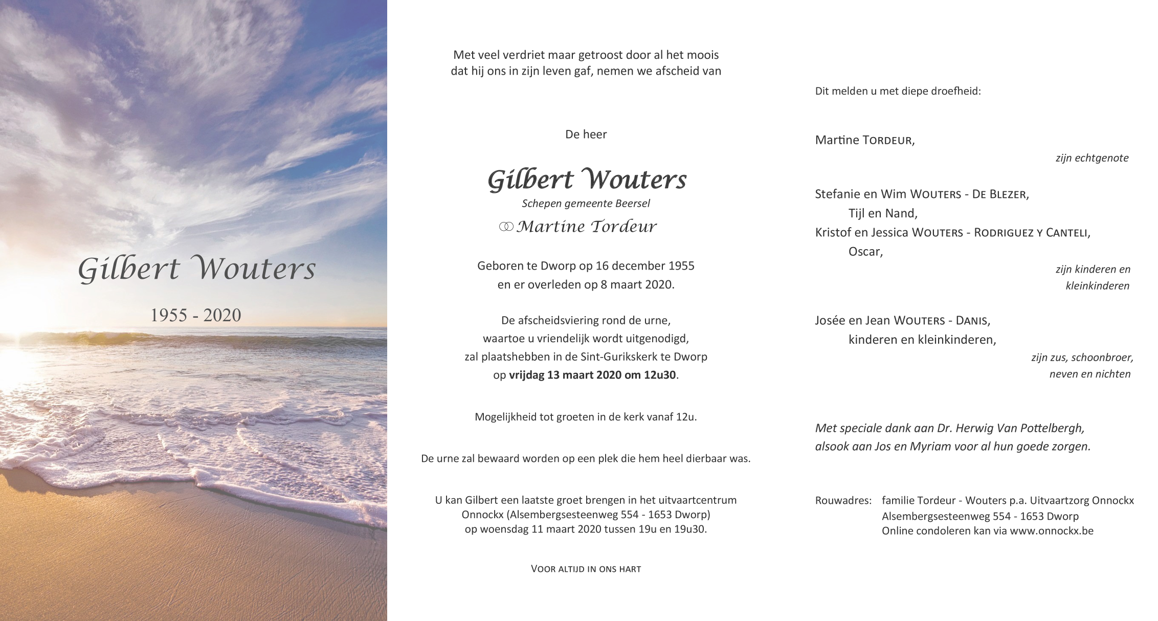 Décédé à Dworp (1653) le dimanche 8 mars 2020 à l'âge de 64 ans