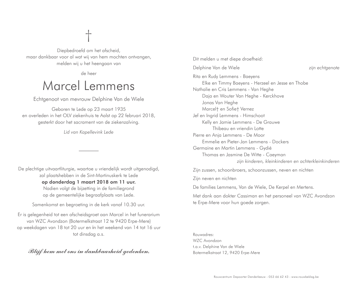 Fallecido en Aalst (9300) el jueves, 22 de febrero de 2018 a la edad de 82 años