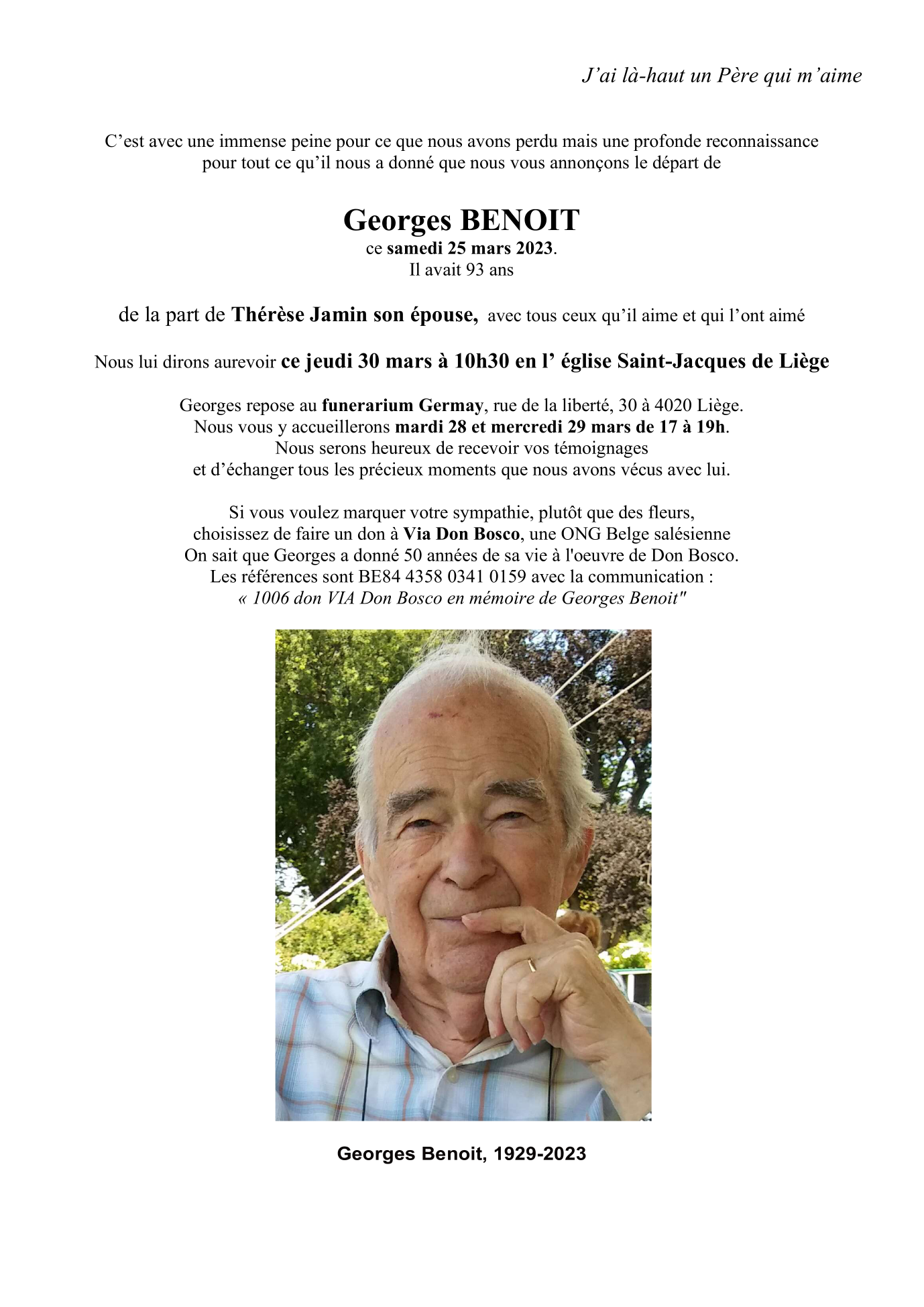 Décédé à Liège (4020) le samedi 25 mars 2023 à l'âge de 93 ans