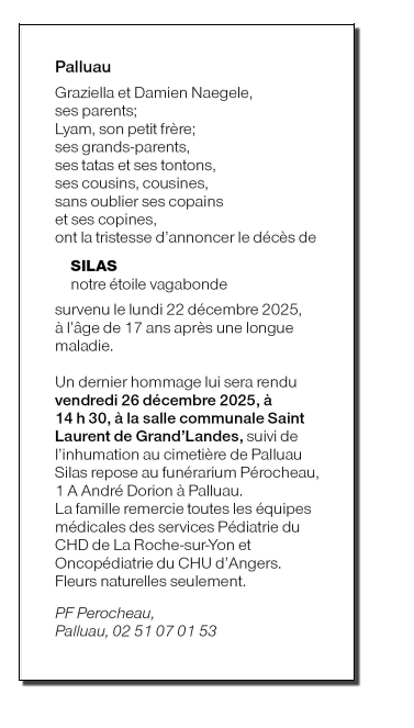Died in La Roche-sur-Yon (85000, France) on 22 December 2025 at the age of 17 years
