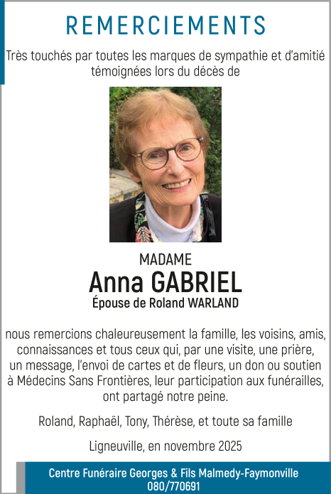 Madame Anna GABRIEL épouse de Roland WARLAND