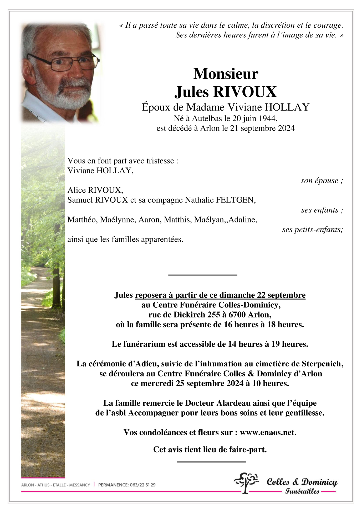 Died in Arlon (6700) on 21 September 2024 at the age of 80 years
