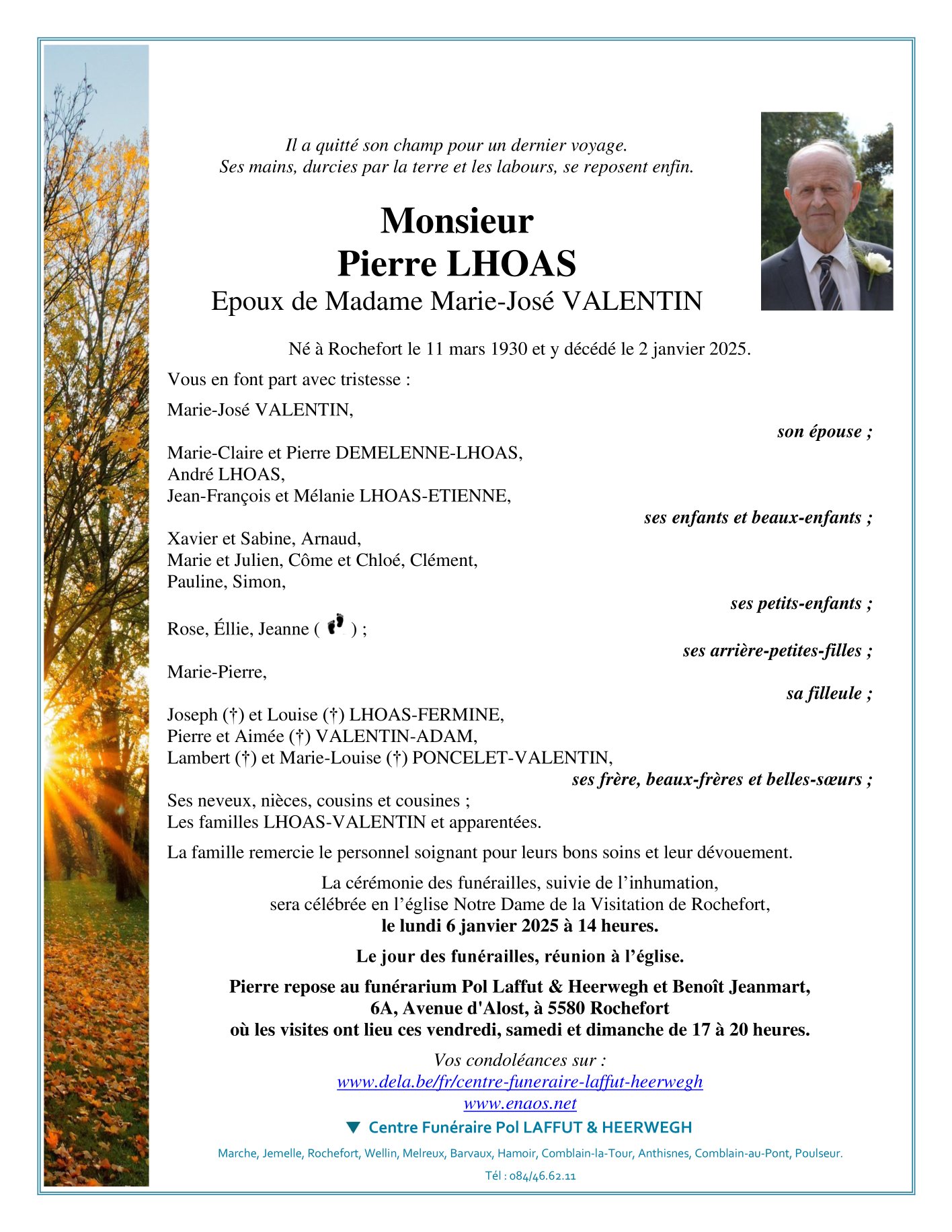 Died in Rochefort (5580) on 02 January 2025 at the age of 94 years