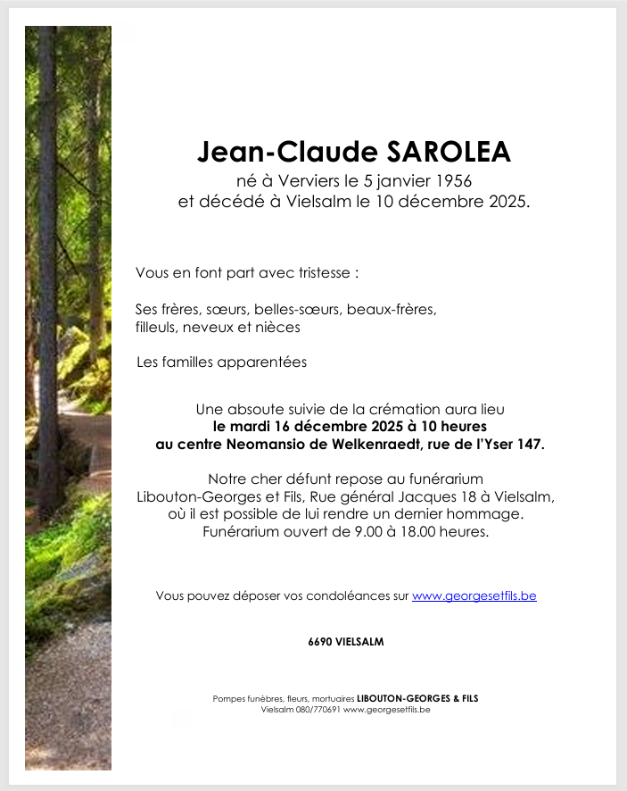 Décédé à Vielsalm (6690) le mercredi 10 décembre 2025 à l'âge de 69 ans