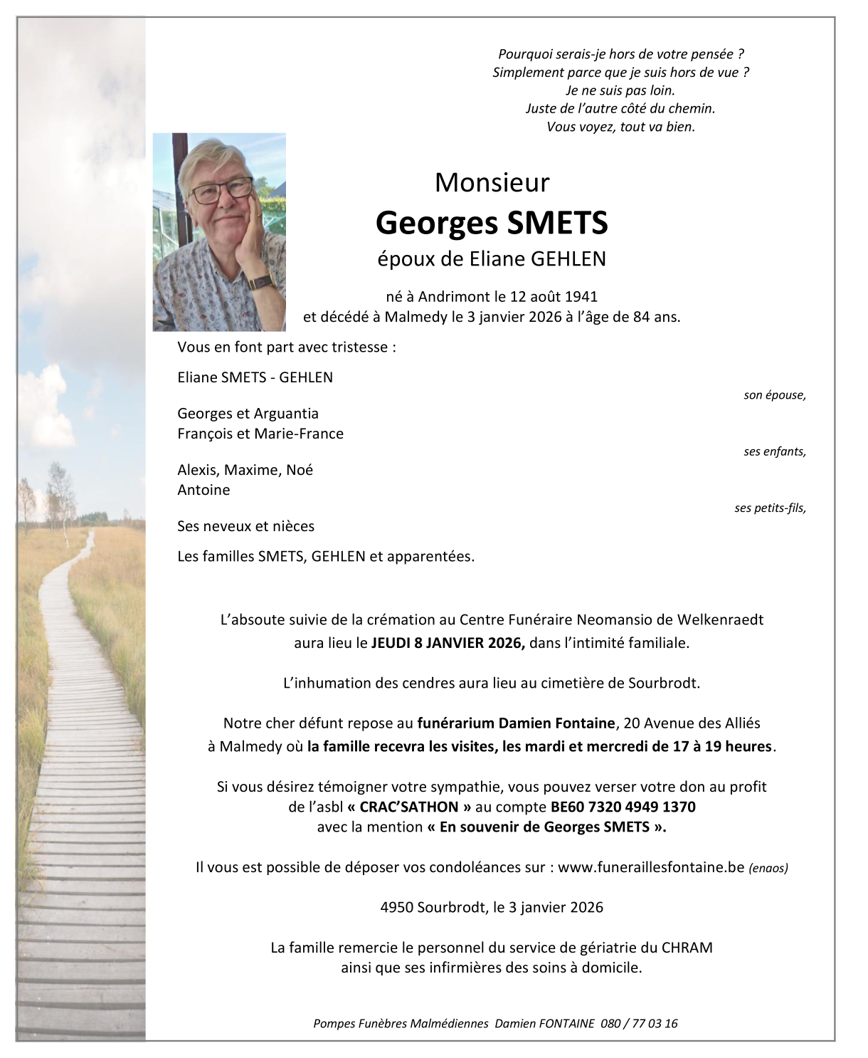 Décédé à Malmedy (4960) le samedi 3 janvier 2026 à l'âge de 84 ans